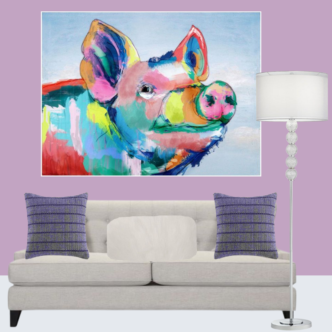 Be Bold. Layering lots of colors, like this colorful painting, can give flair to a room and add that wow factor. The navy pillows also pop against the neutral sofa for an additional attention getter, while the white floor lamp adds brightness without taking away from the key aspects of the room. Having a room be busy and bold isn’t always a bad thing, it can add uniqueness and make a room one of a kind!
