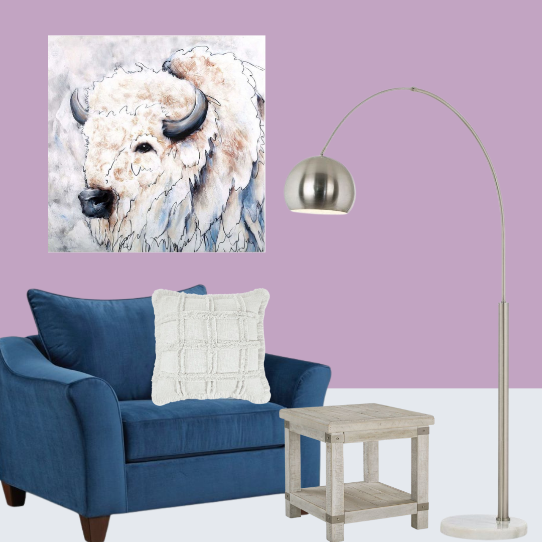 Be simple. If busy isn’t your style, don’t hesitate to take a more simple route, and have the wall color be the attention grabber of the room. Having simpler/more neutral furniture pieces, like the neutral chair, table, and floor lamp, and coordinating wall art and pillows can be the perfect accent to a bold statement wall.