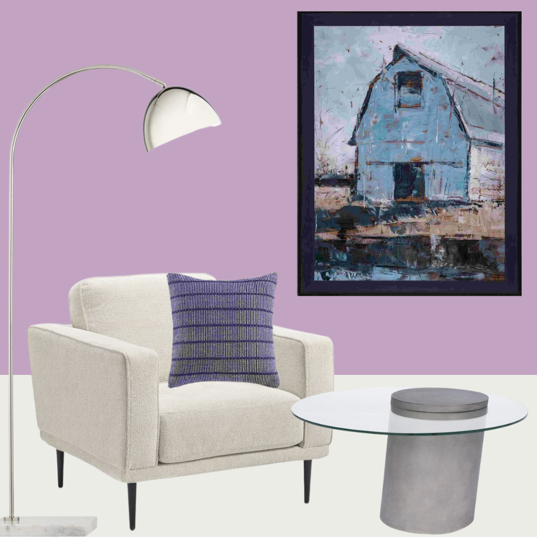 Be bright. Make the room bright by adding lighter colors on top of bold colors like the white painting over the lilac walls and the ivory pillow, neutral table, and shiny floor lamp accenting the blue chair. Not only does this make the bold colors, as seen in the wall color and chair, stand out more, it also brightens up the space, especially when using bold or darker colors.