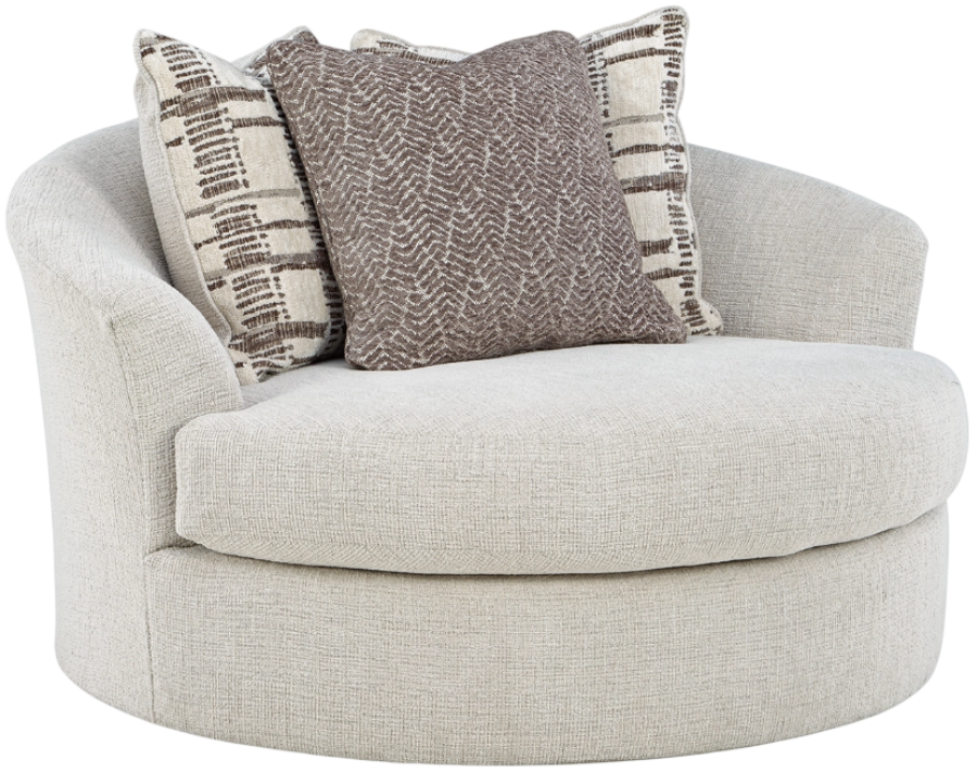 The simple, streamlined style of the Barrelton oversized swivel accent chair is the perfect choice for your casual contemporary home. A spacious cushion and neutral-hued chenille fabric take a relaxed approach to modern flair, creating a fashionable and comfortable retreat. And the swivel feature keeps you in the flow of conversation—form and function at its finest.Read More