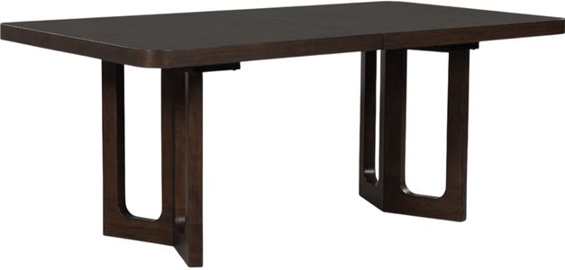 If casual contemporary style is your thing, then you'll love this dining extension table. Its wood-tone finish with a rich, dark grain contrast lends a soothing sensibility, while the sleek and stylish geometric double pedestal base infuses a dash of modern flavor you're sure to savor. With the removable leaf, it seats eight just great.Read More