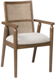 The Ashley® Ella Grove dining arm chair features rich brown upholstery with a supportive cushioned seat and back. Its sturdy frame and armrests provide comfort and durability, making it suitable for both everyday dining and formal occasions. The neutral finish complements a wide range of dining room styles.Read More
