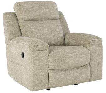 Cozy up in contemporary style. With super-plush fabric and padded arms, this rocker recliner levels up your day-to-day lounging. Sit back and relax with a simple pull tab motion. Thanks to this recliner's inviting neutral hue, you have the flexibility to pair it with a variety of styles and colors.Read More