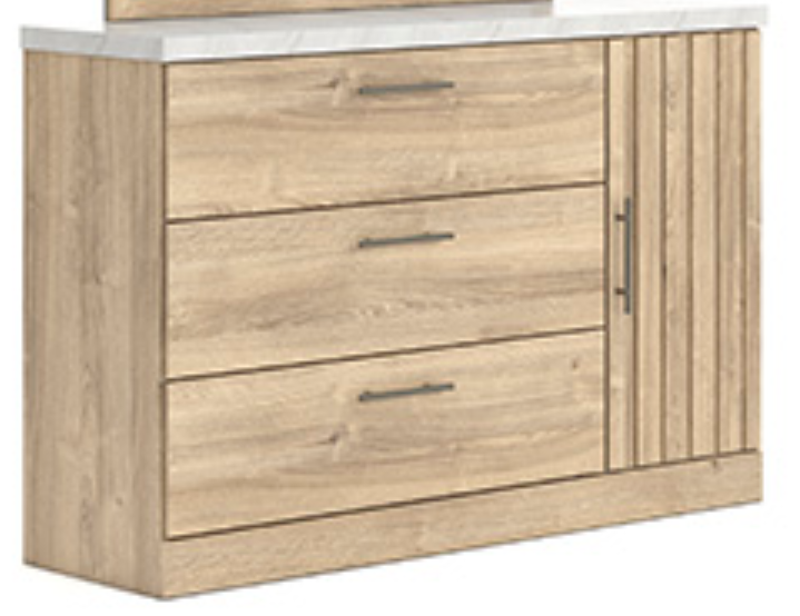 This dresser blends warm tan tones with crisp white accents, offering three spacious drawers and a side door for versatile storage. Its clean lines and modern design make it a practical yet stylish addition to bedrooms, guest rooms, or entryways.Read More