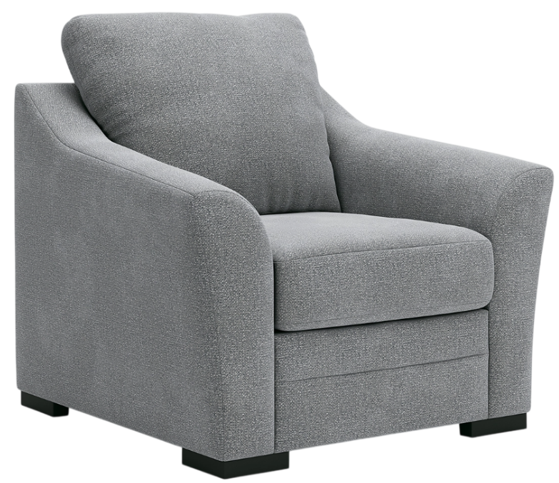 How does comfort, convenience and sleek style sound? We thought so. Crafted with soft, stain-resistant Next-Gen Nuvella™ fabric, this soothing blue-gray chair is a breeze to clean. Subtly flared arms keep everyday relaxation within easy reach.Read More