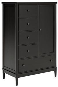 Farmhouse and contemporary design, balanced beautifully. The Portdown door chest merges a clean-lined silhouette and round posts for an updated sensibility. Simple inset drawer fronts and a mix of storage possibilities stack up to on-trend form and function. A modern French black finish with deep warm brown undertones perfectly punctuates this casually inviting piece.Read More