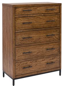 Cool, chic and crafted for the everyday, this chest of drawers is well-suited to your urban contemporary character. It pairs the natural beauty of wood with black metal for a luxe industrial feel. And with five sturdy drawers, sleek bedroom storage is nearly effortless.Read More
