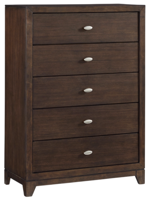 This chest of drawers is casual, timeless and right at home. Crafted to last, it seamlessly blends contemporary design and American classic aesthetics. Refinements such as a rich dark brown color and fully finished drawers reflect quality inside and out. Enhance your restful retreat with this spacious storage solution.Read More