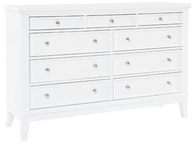 Clean, crisp and utterly contemporary. Brighten up your bedroom with this dresser. Pair it with pops of color, or let the fresh-feeling white finish speak for itself—its versatile hue effortlessly adapts to your changing tastes. Stylized flare legs further elevate the look.Read More