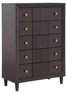 Master the art of metropolitan living. Crafted with posh practicality in mind, this chest of drawers stores everyday essentials in striking fashion. A chic reeded accent delivers effortless textural interest. Adding this piece to your existing collection? The warm dark brown hue welcomes a variety of style pairings, from casual to urban contemporary.Read More