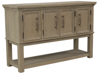 Indulge in relaxed refinement with this dining server. Generously scaled moulding details and a light grayish brown finish exemplify an updated take on traditional styling. Thanks to its versatile functionality, this four-door piece effortlessly works as a sideboard, entryway table or TV stand. Now there’s a show of great taste—no matter where you place it.Read More