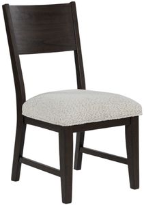 Create your ideal mealtime seating with this upholstered dining chair. Its dark espresso brown finish and clean lines are undeniably contemporary, but the attitude is more relaxed—our interpretation of metropolitan casual design. The comfortably cushioned seat is wrapped in textured polyester for subtle dimension.Read More