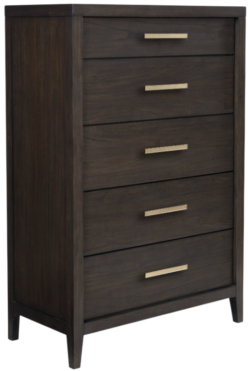 Create your ideal sanctuary with this chest of drawers. The dark espresso brown finish and clean lines are undeniably contemporary, but the attitude is more relaxed—our interpretation of metropolitan casual style. An off-the-floor design with tapered legs beautifully elevates the mood. Spacious drawers with ridged metal bar pulls keep essentials organized.Read More