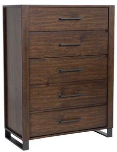 This chest of drawers is urban contemporary style at its finest. Pairing the beauty of wood with a metal sled base and handles in a gunmetal finish, it offers a splendid industrial vibe. The roomy, clean-lined drawers are sure to suit your wardrobe needs. What a dynamic way to wake up your bedroom style.Read More