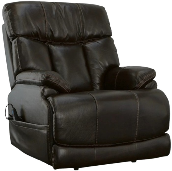 Treat yourself to superior comfort with the Clive power recliner with power headrest and lumbar. Lofty and eye-catching with its heavy thread stitching and a channeled back cushion, this brown leather recliner delivers premium in comfort with pillow pad arms, a high-density seat cushion, and extended footrest to accommodate taller users.Read More