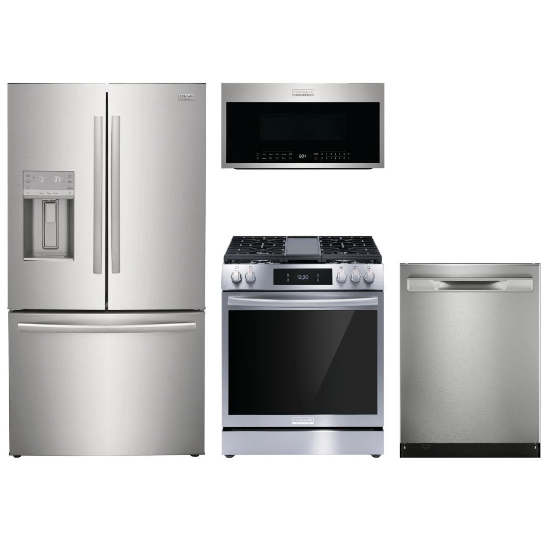 This package includes a Frigidaire Gallery® 22.6 Cu. Ft. Smudge-Proof® Stainless Steel Counter Depth French Door, 30" Smudge-Proof® Stainless Steel Pro Style Gas Range, 1.9 Cu. Ft. Smudge-Proof® Stainless Steel Over The Range Microwave, and 24" Smudge-Proof™ Stainless Steel Top Control Built In Dishwasher.Read More