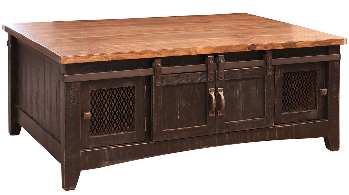 Elegant and eye-catching, the stunning cocktail table from the Pueblo collection features a multi-step black finish on distressed wood. Tops feature a medium brown stain that provides depth and character to solid pine.Read More