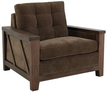 Step into comfort and make this armchair the focal point of your living room. This piece features a solid wood frame and legs, adding an elegant touch. Diagonal wooden supports on the sides enhance its modern rustic charm, blending the warmth of wood with the sleekness of brown upholstery.Read More