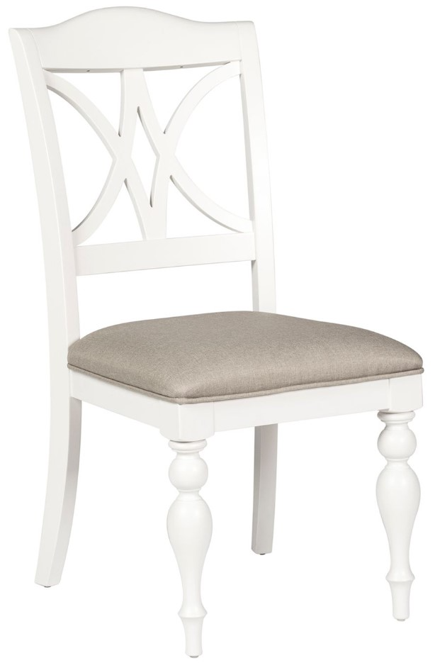 Sit in style and comfort with the Summer House slat back side chair. Crafted of poplar and rubberwood solids, this piece features an oyster white finish, linen upholstery, nylon chair glides to protect your flooring, and is anchored by beautifully round turned legs This item has an alternate finish, sure to compliment any space effortlessly.Read More