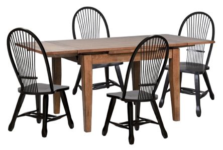 Design possibilities are endless with the Treasures optional five-piece rectangular table set. Crafted of rubberwood solids and oak veneers, this set features a rustic oak finish and includes the leg table and four sheaf back side chairs in a black finish.Read More