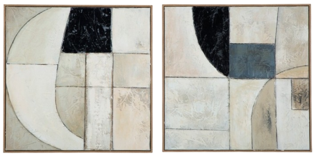 Become captivated by the abstract movement of this wall art set. With warm neutrals coming together in geometric harmony, the hand painted duo defines your decor with visual intrigue. Layered fabric embellishments elevate the look and feel.Read More