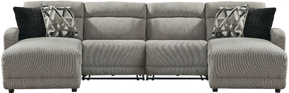 Includes left-arm facing power reclining back chaise, 2 armless power recliners and right-arm facing power reclining back chaise