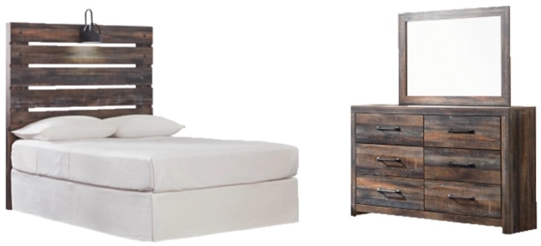 Includes headboard and 6-drawer dresser with mirror