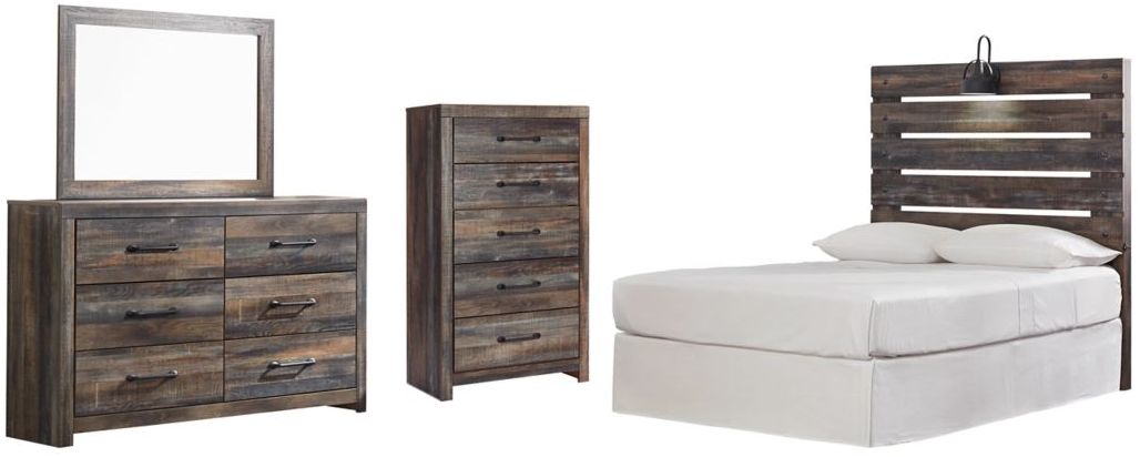 Includes headboard, dresser with mirror and chest
