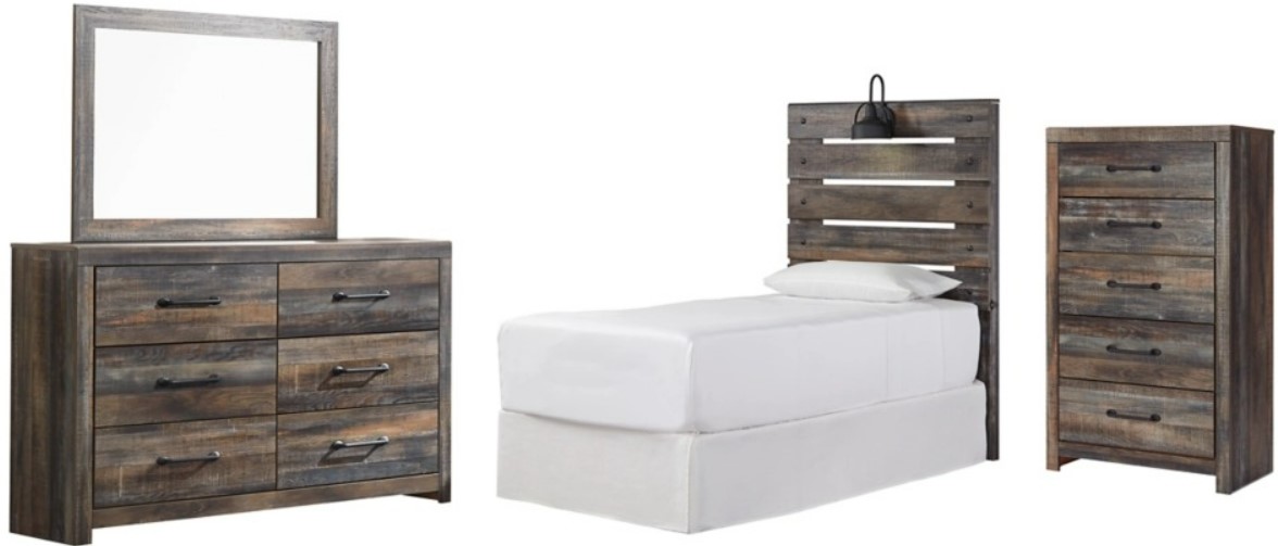 Includes twin panel headboard (does not include bed frame), 6-drawer dresser with mirror and 5-drawer chest