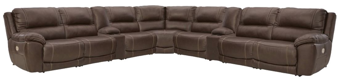 Includes left-arm facing power recliner, 4 power armless recliners, 2 consoles with storage, wedge and right-arm facing power recliner