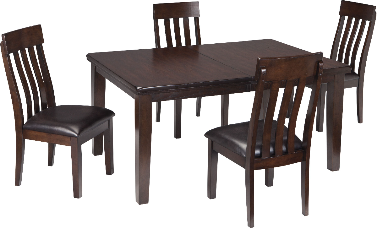 Take clean-lined, classic styling. Add modern comfort. Top with a deep, complex finish that exudes rich sophistication. That’s the look and feel of this dining table set with built-in butterfly leaf extension to accommodate guests. Four rake-back upholstered chairs make it complete.Read More