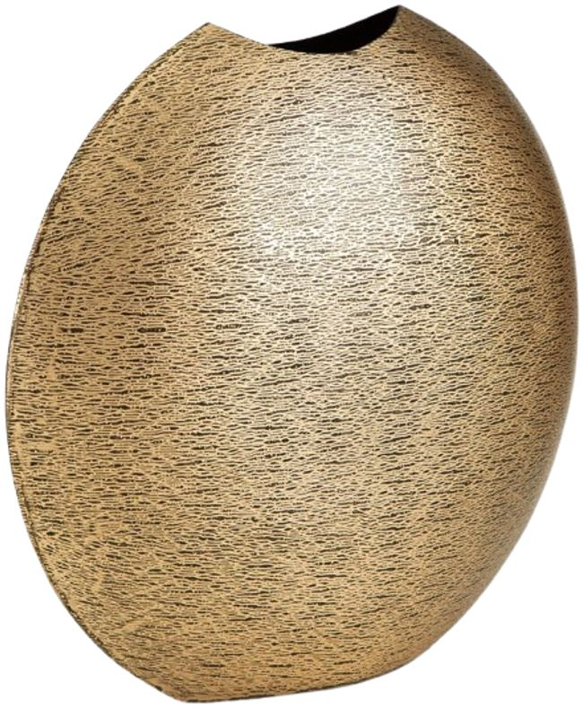 This vase offers a unique take on contemporary stylings. An antiqued goldtone finish has a glam appeal, while the rounded form gives it geometric character. Equally as artistic displayed on its own or with faux greenery, this vase is a statement-making addition to your home accents.Read More