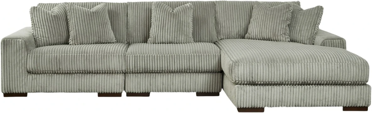 Plush and posh. Showcase your eye for on-trend texture with the statement-making cord upholstery of this sectional with chaise. Its stunningly soft fabric entices in a warm neutral hue, complementing contemporary color palettes. Sink into the cushions and plan to stay a while this cozy living room.Read More