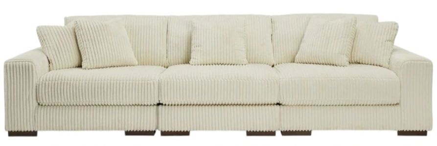 Plush and posh. Showcase your eye for on-trend texture with the statement-making cord upholstery of this sectional. Its stunningly soft fabric entices in an ivory hue, complementing contemporary color palettes. Sink into the cushions and plan to stay a while—this cozy living room centerpiece highlights your high-end approach to comfort and style.Read More