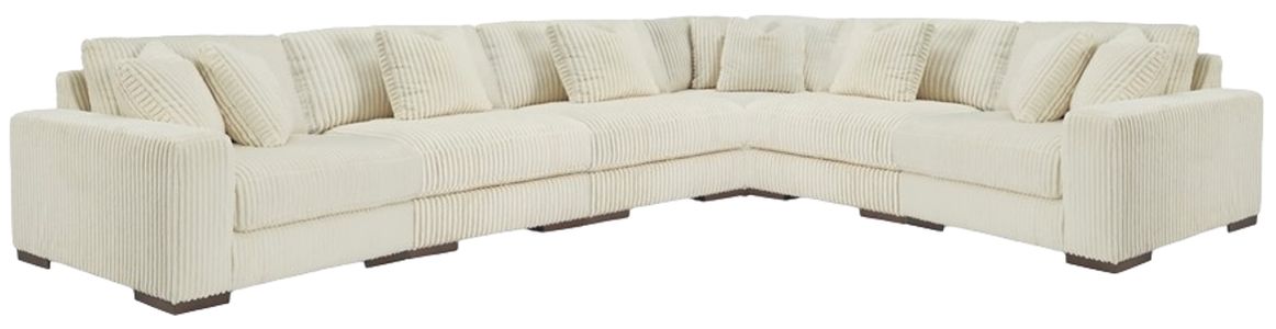 Plush and posh. Showcase your eye for on-trend texture with the statement-making cord upholstery of this sectional. Its stunningly soft fabric entices in an ivory hue, complementing contemporary color palettes. Sink into the cushions and plan to stay a while—this cozy living room centerpiece highlights your high-end approach to comfort and style.Read More