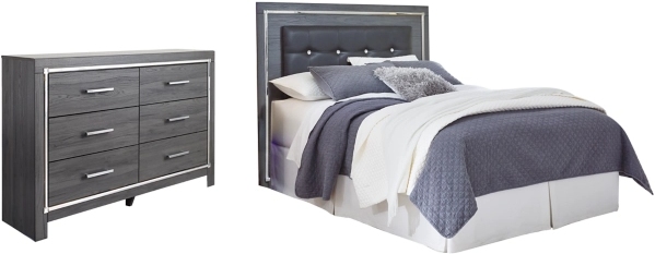 Reminiscent of Hollywood glamour of yesteryear, this bedroom set with queen/full panel headboard and dresser interprets luxury in a decidedly modern way. Headboard details include button-tufted upholstery, faceted faux crystals and LED lights enhanced with remote-controlled settings for color and brightness. Chrome-tone drawer pulls and accents are a chic complement to the dazzling gray finish.Read More