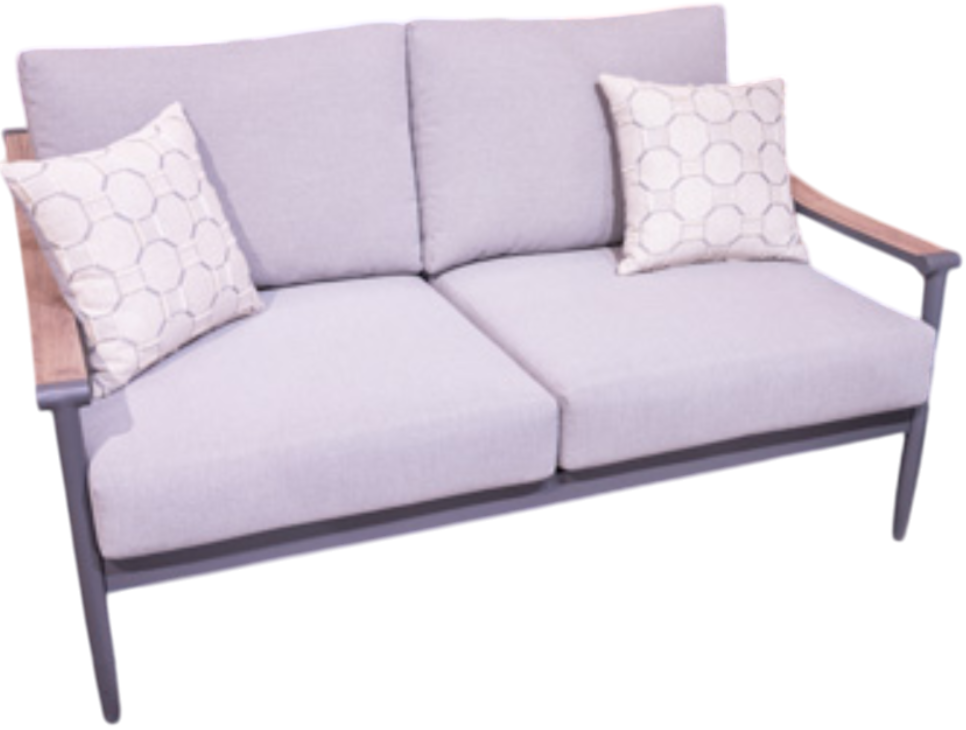 A refined marriage of style and durability, this outdoor loveseat adds contemporary flair to your porch or patio. Wood tones and shades of gray lend a versatile, neutral appeal. And this loveseat is built to last, thanks to its rust-resistant frame and cleanable, UV-resistant fabric.Read More