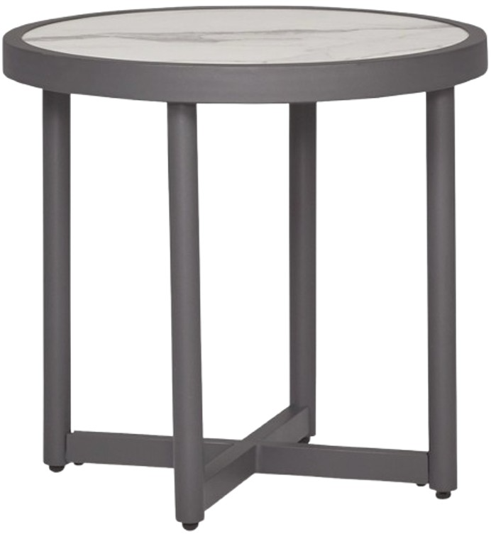 A refined marriage of style and durability, this outdoor end table adds contemporary flair to your porch or patio. Shades of gray and a luxe marble look on top lend a versatile, neutral appeal. And this table is built to last, thanks to its rust-resistant aluminum construction.Read More