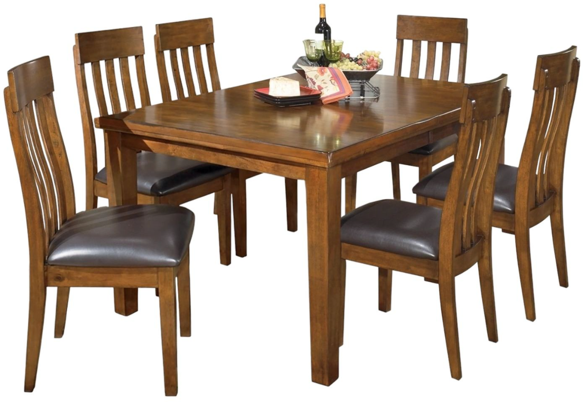 Have an appetite for clean-lined design, but with warmth and rustic character? Satisfaction is served with this dining room set. We love how its gently distressed, burnished finish and plank-style accents incorporate depth and character. And its straightforward lines? A wonderful display of good taste. The plushly upholstered faux leather seating makes sitting down to dinner that much more enticing. Makes for easy cleanup, too.Read More