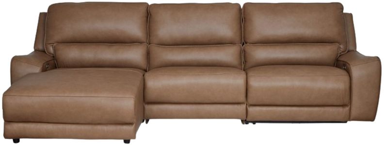 Live and lounge luxuriously. This power reclining sectional sofa chaise brings an ultra-stylish flair to your home’s central hub. Its seating area is wrapped in top grain leather in a rich caramel color, giving you a trend-right look made all the better with high-quality materials.Read More