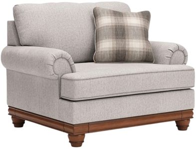 Dressy and also soft to the touch, its organic neutral-toned upholstery is sure to bring a transitional farmhouse aesthetic to your living space. An accent pillow in windowpane plaid infuses a cozy and inviting farmhouse sensibility, while a full wraparound base and decorative turned legs complete the chair's timeless look.Read More