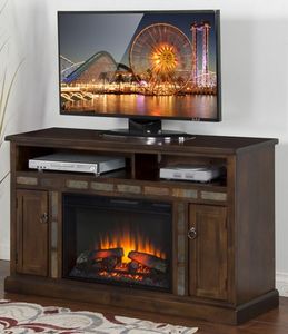 Sunny Design Santa Fe Fireplace Console offers two shelves, two doors, built in fireplace and slate inserts Place this console inside any livingroom area for a great look and design.